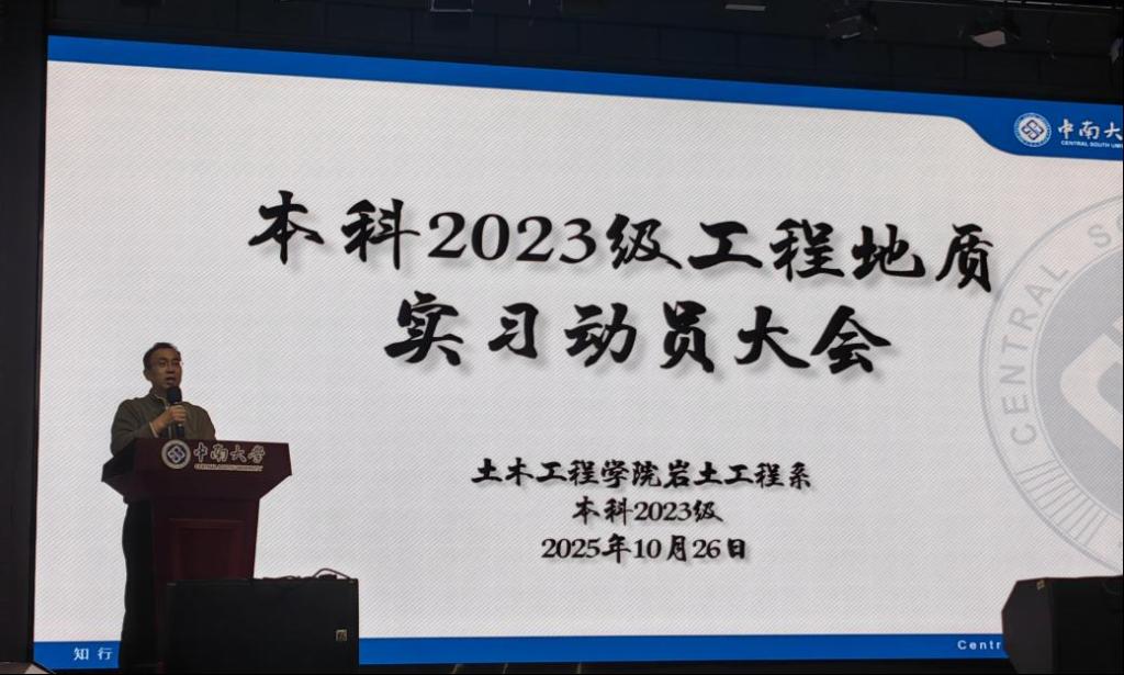 10月26日下午,伟德bv1946官网首页本科2023级工程地质实习动员大会在铁道学院大礼堂顺利举行。岩土工程系主任陈晓斌教授出席,地质实习带队教师、本科2023级辅导员、400余名学生参与,会议由本科2023级辅导员潘文彬主持。