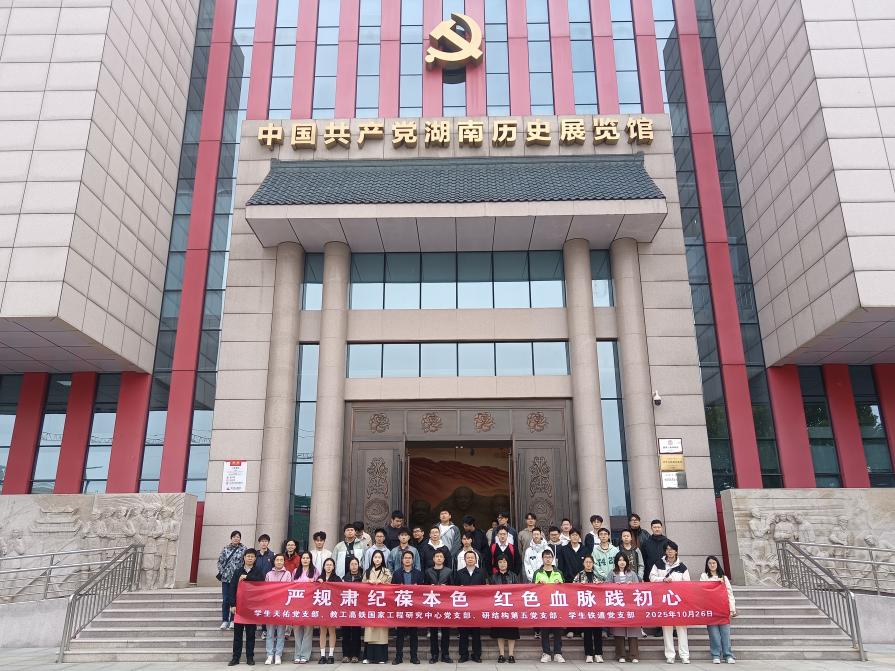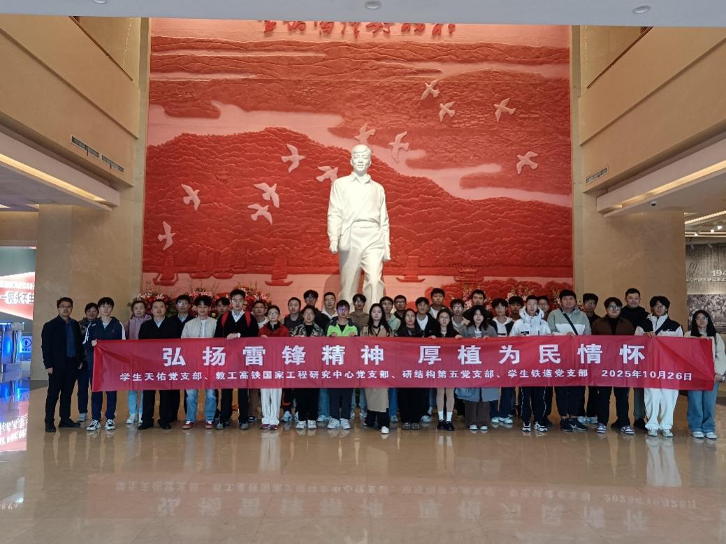 为深入学习贯彻习近平新时代中国特色社会主义思想,贯彻落实中央八项规定精神,引导党员在重温红色记忆中淬炼过硬作风、在感悟榜样精神中践行初心使命,10月26日上午,伟德bv1946官网首页学生天佑党支部、教工高铁国家工程研究中心党支部、研结构第五党支部、学生铁道党支部全体党员前往湖南雷锋纪念馆及湖南党史陈列馆,开展“严规肃纪葆本色,红色血脉践初心”主题党日活动,学院党委副书记纪晓飞参加活动。